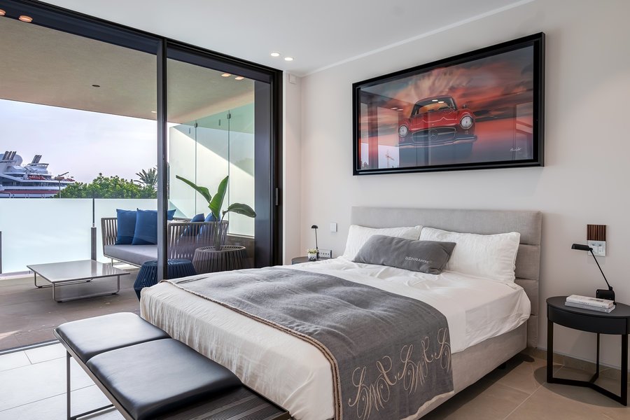 Just 3 minutes from the center, nestled between trees and the sea is the location of the luxury residential complex Harbour Lofts with only 15 units. This exclusive new development combines exceptional design, fantastic views and quality of life. The apartments offer large common areas with many terraces, a stylish outdoor pool, a spa with fitness, sauna and indoor pool. Through the large windows all apartments enjoy plenty of natural light. Each apartment has its own spacious terrace. The apartments have excellent sea / harbour views, as well as a romantic view of Palma and the famous cathedral.