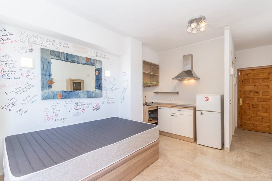 Are you a skipper, a sailor, or do you simply love the sea? Then this studio apartment could be your perfect home port in Mallorca. Just a stone’s throw from the Arenal Yacht Club, this renovated flat is ideally situated for anyone whose life revolves around the water. After a long day at sea, you can come home here and still be right by the sea. With approx. 40 sqm of living space, you’ll find a bright living area with a kitchenette and direct access to an approx. 5 sqm west-facing balcony. The unobstructed view invites you to relax and enjoy the sunset after a day’s work on board. The spacious bedroom also offers its own access to the balcony – perfect for fresh sea air and a relaxed start to the day. The bathroom is functionally equipped with a shower tray. The flat is situated on the second floor of a residential block. In just a five-minute walk, you can reach the idyllic beach of Es Caló de Sant Antoni, a real insider’s spot with a cosy beach bar and surf school. Adjacent to this is the Son Veri area, and numerous restaurants and shops open all year round, all within easy walking distance. An ideal home for anyone who not only loves the sea, but works there too. For sale EXCLUSIVELY by BUY A HOME MALLORCA.